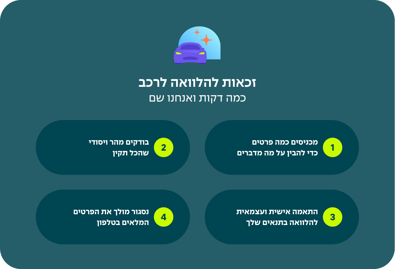 רוצה שנעזור לך גם למצוא רכב שמתאים בול? אנחנו כאן